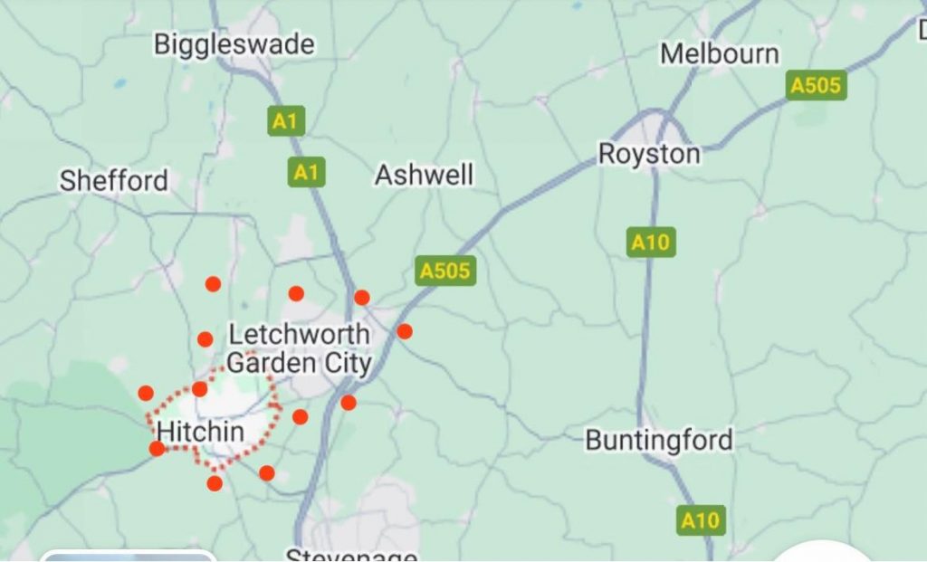 Currently we only cover areas in North Hertfordshire as shown in the map below, unfortunately we are unable to provide assistance for other areas at this time.
